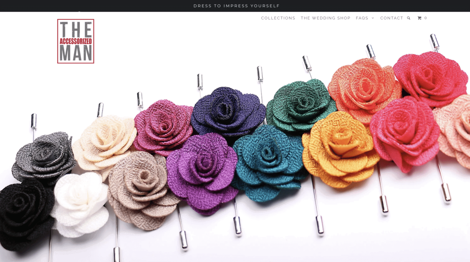The Accessorized Man is an online retailer that specializes in unique men’s fashion accessories, specifically pocket squares and lapel flower pins. This brand was in need of a minimal, clean website that showcased the rainbow of products. TheAccessorizedMan.com was created using Shopify.